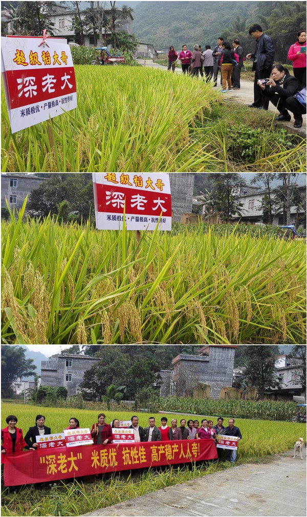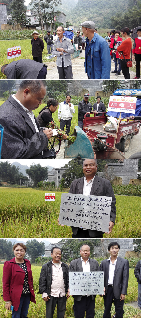 引進(jìn)新的水稻好品種,讓老區(qū)人民種出穩(wěn)產(chǎn)、高產(chǎn)田,在主糧上實(shí)現(xiàn)豐收,助推加快脫貧致富的步伐,一直是東蘭縣種子管理部門(mén)以及縣、鄉(xiāng)兩級(jí)經(jīng)銷(xiāo)商的共同心愿。作為東蘭縣農(nóng)業(yè)局原種子管理站站長(zhǎng),也是東蘭縣高級(jí)農(nóng)藝師的韋聯(lián)康,把篩選適宜當(dāng)?shù)氐暮闷贩N作為自己最大的職責(zé)。通過(guò)2年的觀察后,韋站長(zhǎng)將亞華種業(yè)的“深老大”品種鄭重地推薦給了經(jīng)銷(xiāo)商陳麗云。2015年,本著謹(jǐn)慎的態(tài)度,陳麗云引進(jìn)了少量的“深老大”種子在全縣多個(gè)鄉(xiāng)鎮(zhèn)試種,全面考察該品種的表現(xiàn)。切學(xué)、隘洞、長(zhǎng)江等中稻區(qū)的表現(xiàn)非常優(yōu)異,抗病又抗倒,8月份已喜獲豐收??h種子管理站在切學(xué)、隘洞兩鄉(xiāng)鎮(zhèn)組織的品種對(duì)比驗(yàn)產(chǎn)中,“深老大”畝產(chǎn)高達(dá)700多公斤,在多個(gè)品種中高居第一!