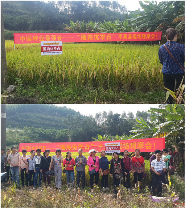 2015年11月7日,正值百色右江河谷平原地區(qū)豐收季節(jié),微風(fēng)吹拂田間的稻穗,一塊塊稻田涌起稻浪。在這美麗的季節(jié),中國(guó)種業(yè)最強(qiáng)音---隆兩優(yōu)華占及深老大百色平果縣零售商現(xiàn)場(chǎng)觀摩會(huì)在平果縣坡造鎮(zhèn)都陽(yáng)村順利舉行。該縣代理商黃艷珠召集各鄉(xiāng)鎮(zhèn)20名零售商及20多位種植戶聚集在都陽(yáng)村,共同見(jiàn)證隆兩優(yōu)華占和深老大的優(yōu)異表現(xiàn)。