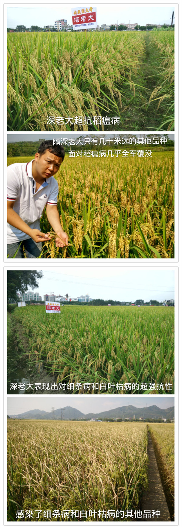 廣西橫縣是當(dāng)之無愧的中國茉莉花之鄉(xiāng)。然而,在這個(gè)秋天,成片成片的水稻細(xì)條病和白葉枯病讓部分沉浸在花海之中的農(nóng)民笑不起來,在細(xì)菌性病害肆虐的情況下今年橫縣的水稻種植情況非常不理想,但有一個(gè)品種卻表現(xiàn)出超強(qiáng)的抗性,這就是““深老大””。經(jīng)過今年幾千畝的小面積推廣,“深老大”無論在產(chǎn)量、抗性、米質(zhì)方面已經(jīng)表現(xiàn)出了強(qiáng)大的生命力,特別是對(duì)水稻細(xì)菌性病害——細(xì)條病和白葉枯病有超強(qiáng)抗性,相較其他優(yōu)質(zhì)品種來說優(yōu)勢(shì)依然特別明顯。