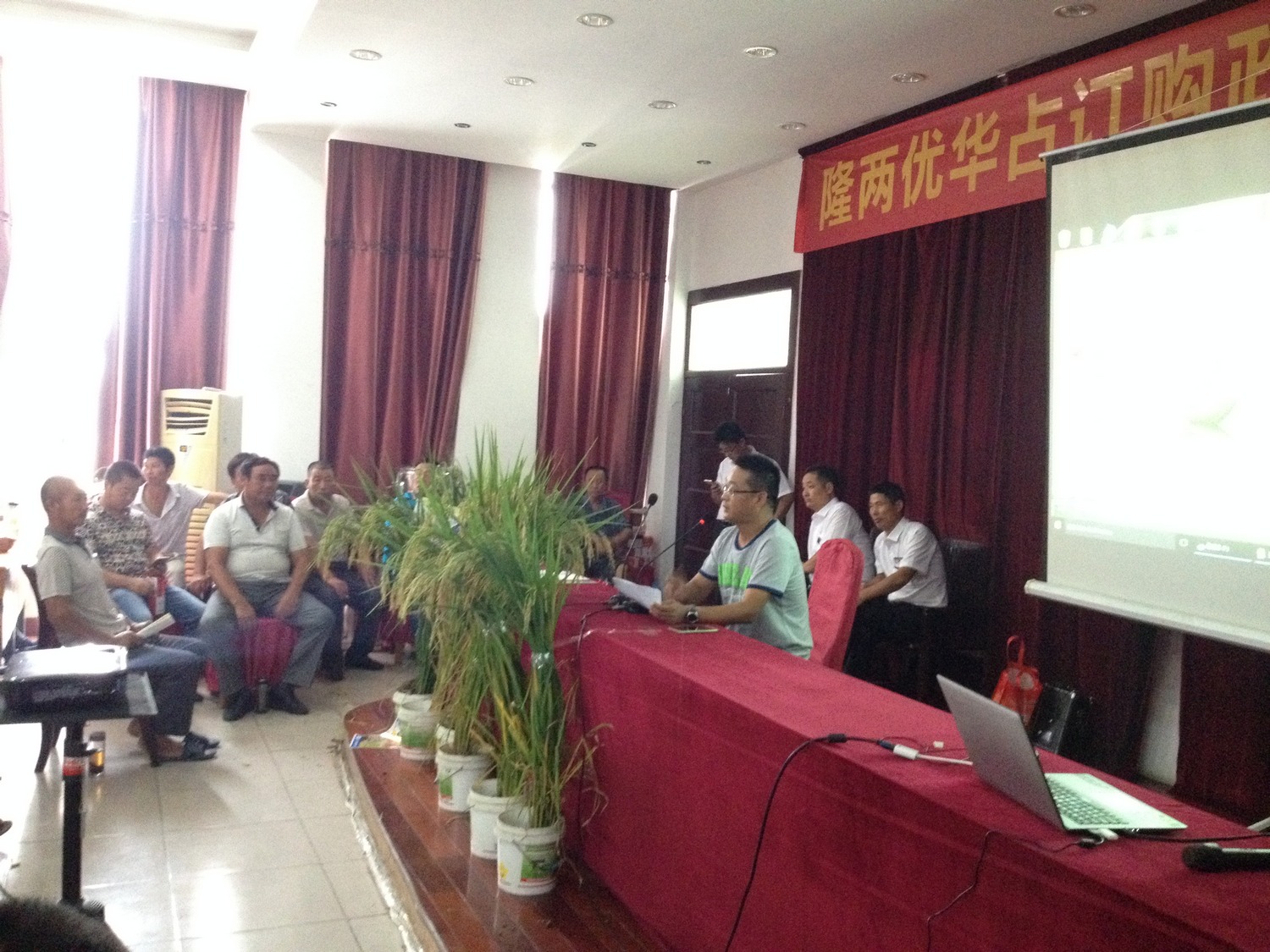 這次會議,開始由亞華種業(yè)區(qū)域經(jīng)理黃明燈詳細(xì)介紹了亞華公司概況,隆兩優(yōu)華占2016年在安徽乃至全國種植表現(xiàn)情況及其他地區(qū)訂購情況,并就2016-2017年度隆兩優(yōu)華占種子的芽率和純度情況進(jìn)行了介紹。