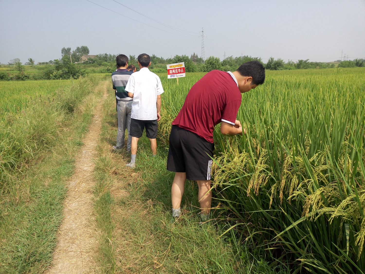 2016年8月25日早上8點,應城市各鄉(xiāng)鎮(zhèn)二十余位經(jīng)銷商齊聚一起,從應城代理商楊文俊楊總的門店出發(fā),驅車前往應城市陳河鎮(zhèn)的隆兩優(yōu)華占觀摩稻田。
