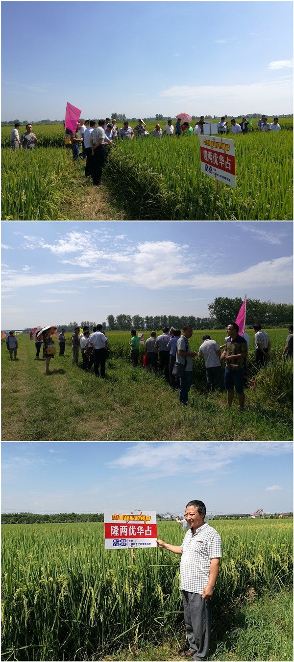 早上9點(diǎn)左右,滁州市區(qū)十個(gè)鄉(xiāng)鎮(zhèn)的零售商約30人,在滁州市代理商王守明王總的帶領(lǐng)下,一起去往農(nóng)場內(nèi)的隆兩優(yōu)華占示范田進(jìn)行觀摩。大多零售商通過這幾年的種植銷售,對隆兩優(yōu)華占信心越來越足,尤其今年連續(xù)高溫下隆兩優(yōu)華占的結(jié)實(shí)率還這么高,大家對這個(gè)優(yōu)質(zhì)品種十分看好!