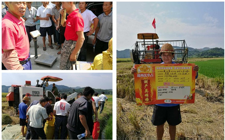 江坊村種植大戶黃義昌去年參觀了一季早示范田,今年自己種了十幾畝,在七月份連續(xù)高溫的炙烤下,隆兩優(yōu)華占耐高溫的特性顯露無(wú)疑,周圍別的品種結(jié)實(shí)率只有一半不到,而隆兩優(yōu)華占卻很少有癟谷,結(jié)實(shí)率超過90%。經(jīng)過多人見證,現(xiàn)場(chǎng)收割1.3畝,收割濕谷1879斤,扣除15%水分,合畝產(chǎn)干谷1597斤,我們也將繼續(xù)關(guān)注后續(xù)再生稻的表現(xiàn)。