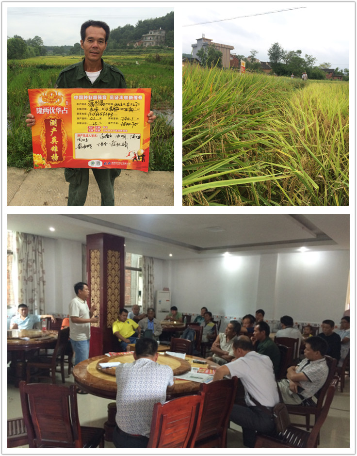2016年8月27日,天氣,陰。東安及冷水灘的經(jīng)銷商數(shù)十余人在東安石期市石角村匯聚,只為觀看中國(guó)種業(yè)超強(qiáng)音——隆兩優(yōu)華占在東安高調(diào)亮相的表現(xiàn)。