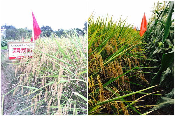 大余經(jīng)常會受到臺風影響,所以品種的抗倒性要放到首位,深兩優(yōu)5183桿子粗,抗倒性強,在山區(qū)種植優(yōu)勢明顯。田間的深兩優(yōu)5183劍葉筆挺,穗子像瀑布一樣,在經(jīng)歷了兩次臺風的洗禮后,沒有絲毫倒伏,這讓現(xiàn)場的零售商大吃一驚,紛紛表示,在這兩年極端天氣增多的情況下,這個品種明年可以好好推廣一下。