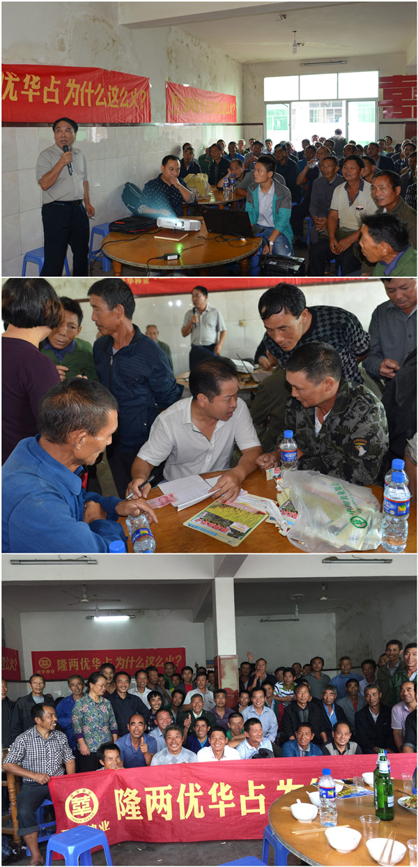 緊接著召開了室內(nèi)會(huì)議,首先由亞華種業(yè)江西分公司總經(jīng)理谷總分享隆兩優(yōu)華占的驕人成績(jī)、特征特性(廣適性強(qiáng)——一季早+再生稻、一季晚、早二晚,抗倒抗病,高產(chǎn)穩(wěn)產(chǎn))、2016年江西各地的優(yōu)異表現(xiàn)。然后由代理商徐站長(zhǎng)就隆兩優(yōu)華占的高產(chǎn)栽培技術(shù)簡(jiǎn)單地與種植戶進(jìn)行交流和探討,只有好馬配好鞍,方能最大化凸顯馬優(yōu)秀品質(zhì),在農(nóng)作物種植管理上,只有良種配良法,方能最大化凸顯品種的潛能。