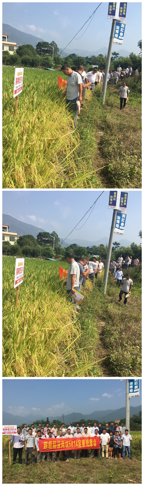 2016年9月20日上午,在宜章深兩優(yōu)5814的代理商李恪瑤李總的組織下,宜章縣各鄉(xiāng)鎮(zhèn)零售商及代理商一行30余人來到壽福村,一起見證深兩優(yōu)5814作為一晚在宜章的種植表現(xiàn)。