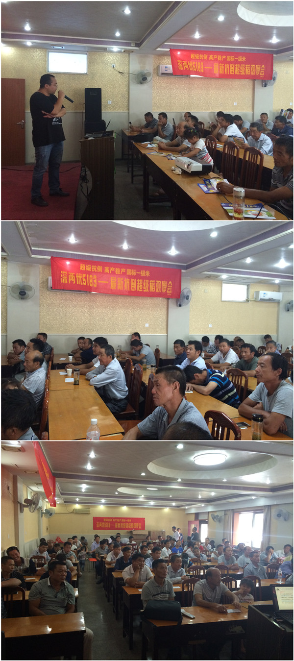 在田間觀摩會結(jié)束之后,我們轉(zhuǎn)入圓山大酒店會議廳,安徽分公司吳陵海經(jīng)理為廣大零售商和種植大戶們介紹了我們湖南亞華種業(yè)的情況,并對深兩優(yōu)5183品種進(jìn)行了栽培技術(shù)要點(diǎn)培訓(xùn)。包括施肥要以基肥和有機(jī)肥為主,重施底肥,早施追肥,干濕相間促分蘗,看苗補(bǔ)施穗粒肥,后期注意病蟲害的及時(shí)防治。眾人聽得津津樂道,好品種就是這么有吸引力!深兩優(yōu)5183,強(qiáng)大超乎你的想象!