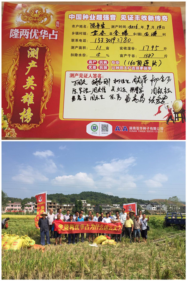 秋天是一個(gè)收獲的季節(jié),隆兩優(yōu)華占在各地頻頻傳來捷報(bào)。2016年9月14日,在宜豐縣金瑞鄉(xiāng)白溪村對隆兩優(yōu)華占進(jìn)行現(xiàn)場收割測產(chǎn)。種植戶陳年生(13330192780)今年連片種植隆兩優(yōu)華占160畝,實(shí)行粗放管理,現(xiàn)場收割1.1畝,實(shí)收濕谷1795斤,扣除15%水分,合畝產(chǎn)干谷1387斤。種植戶自己講:“今年播種早,前面被水淹了幾天,抽穗的時(shí)候又是幾天高溫,本來都不抱什么希望了,想著就收個(gè)千八百斤減少點(diǎn)損失就行,沒想到隆兩優(yōu)華占產(chǎn)量還這么好,比我另外幾個(gè)朋友種的其他品種要多收兩百多斤一畝,我相當(dāng)滿意,還好今年種了隆兩優(yōu)華占,在災(zāi)年沒想到還能賺到錢,他們都羨慕我買到了好品種”!