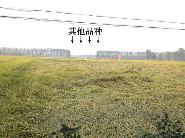 上午10時(shí)許,一行40余人來到了位于壽縣堰口鎮(zhèn)大光社區(qū)水稻種植大戶陳善明的隆兩優(yōu)華占田塊里。車子停在路邊剛下車就看見了隆兩優(yōu)華占測產(chǎn)田塊里的水稻就像與之相輝映的彩旗一樣,迎風(fēng)飄揚(yáng)、英姿颯爽。而與之形成鮮明對比的是相鄰的上年度某暢銷品種田塊,出現(xiàn)大面積倒伏,足以襯托出隆兩優(yōu)華占在抗倒方面的較強(qiáng)優(yōu)勢。