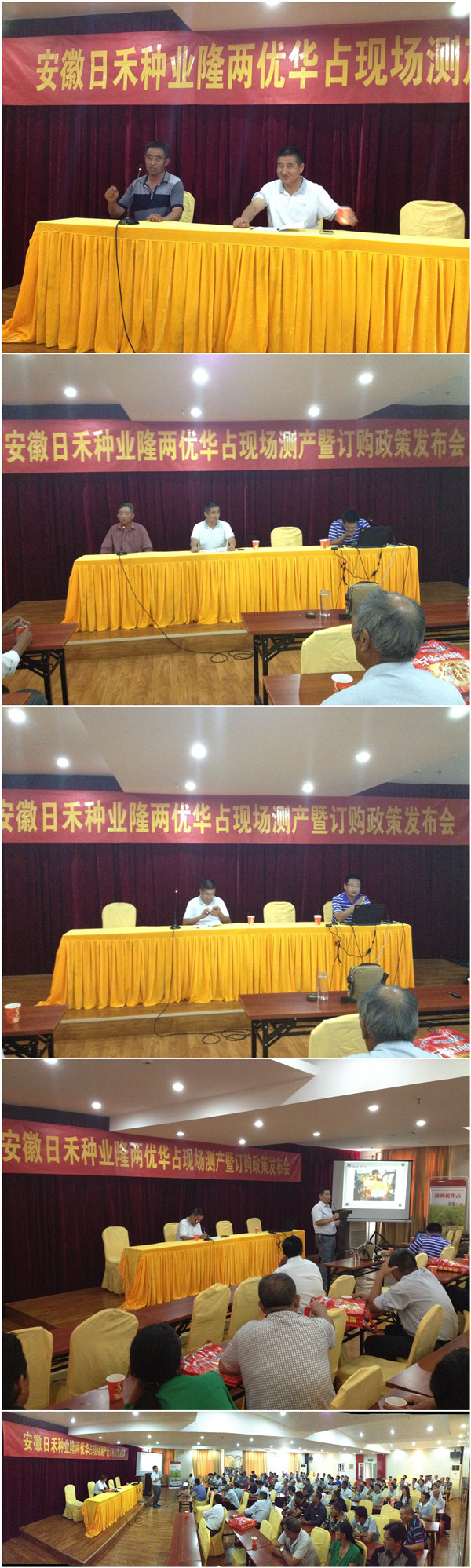 2016年9月14日,正直2016年中秋節(jié)前夕,安徽日禾種業(yè)六安分公司在六安市隆重召開了隆兩優(yōu)華占現(xiàn)場(chǎng)測(cè)產(chǎn)暨訂購政策發(fā)布會(huì)。隆兩優(yōu)華占一如既往的超強(qiáng)優(yōu)勢(shì),在參會(huì)零售商和種田大戶中造成了轟動(dòng)效果。