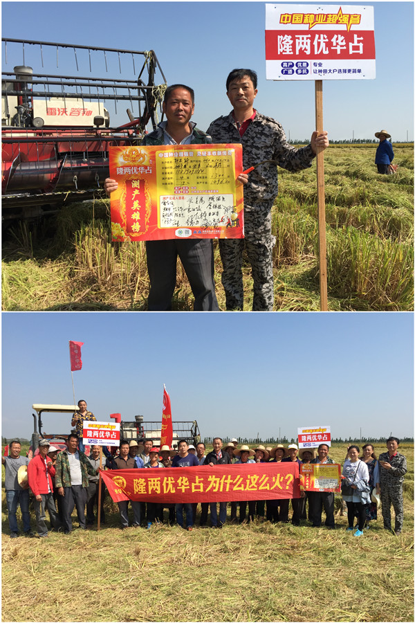 上午九點(diǎn)半,周圍鄉(xiāng)鎮(zhèn)各路人馬陸續(xù)來到恒豐鄉(xiāng)九龍村。彩旗飄飄,隆兩優(yōu)華占迎風(fēng)招展喜迎四方來客。受近期風(fēng)雨影響,道路兩邊均有幾塊其他品種田塊出現(xiàn)不同程度的倒伏,但隆兩優(yōu)華占紋絲不動(dòng),泰然自若。示范戶郭立新,今年種植水稻面積150余畝,和我們分享到:“在今年這種天氣下,我收割其他品種產(chǎn)量平均在1100斤左右,我今年種了50畝隆兩優(yōu)華占,品種表現(xiàn)都非常好,產(chǎn)量比其他品種肯定也要好點(diǎn),預(yù)計(jì)產(chǎn)量在1400斤左右。” 在和大家交流的過程中,許多農(nóng)戶受高溫天氣影響下,產(chǎn)量普遍在1000斤左右。代理商饒鋒和大家分享到隆兩優(yōu)華占不僅抗性好,米質(zhì)優(yōu),而且產(chǎn)量非常高,是個(gè)穩(wěn)產(chǎn)、高產(chǎn)的好品種。之后,我們挑選了一塊面積4.0畝的田塊進(jìn)行測(cè)產(chǎn)驗(yàn)收。在大家的見證下,隆兩優(yōu)華占共收濕谷6301斤,折合畝產(chǎn)干谷1496.2斤。在場(chǎng)人員無不稱贊,現(xiàn)場(chǎng)零售商當(dāng)場(chǎng)預(yù)定3000斤,農(nóng)戶預(yù)定預(yù)計(jì)在2000斤左右。許多種植大戶聲稱在今年這種天氣下,隆兩優(yōu)華占有這樣的產(chǎn)量可以看出隆兩優(yōu)華占是個(gè)種的穩(wěn)、了不起的好品種,紛紛表示明年會(huì)種植隆兩優(yōu)華占。