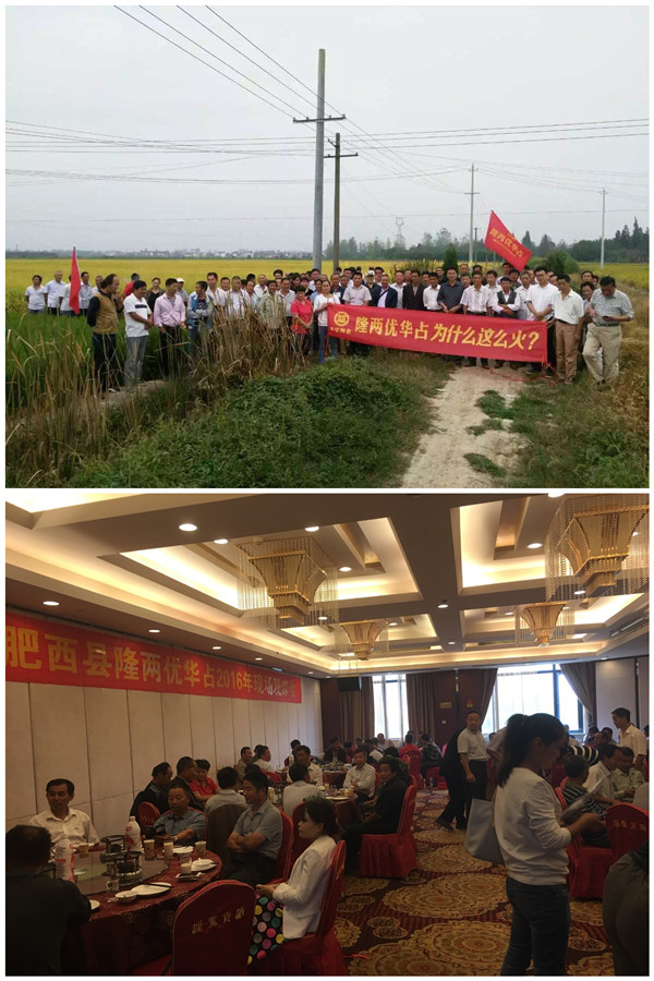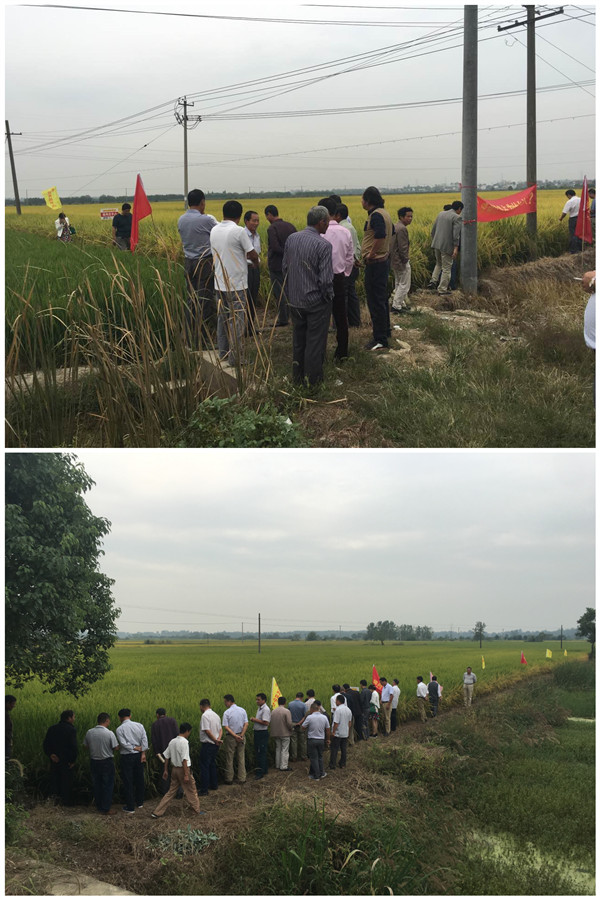 2016年9月21號(hào)由合肥潤禾農(nóng)業(yè)科技有限公司組織肥西縣近百人的零售商及種田大戶,浩浩蕩蕩的趕到位于四豐公路旁的中國龍稻--隆兩優(yōu)華占示范田。