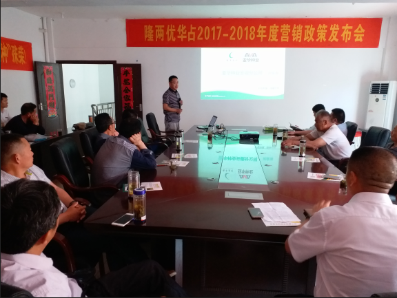 2017年5月18日,安徽日禾種業(yè)召開了“隆兩優(yōu)華占2017-2018年度營銷政策”發(fā)布會。來自霍邱縣各鄉(xiāng)鎮(zhèn)的銷售精英一起參與并見證了這一令人奮進的時刻,并對下年度的銷售目標圈定了一個初步規(guī)劃。