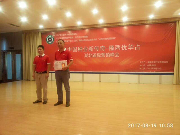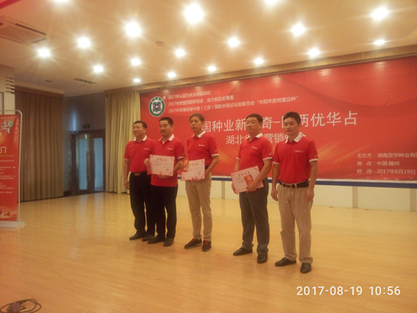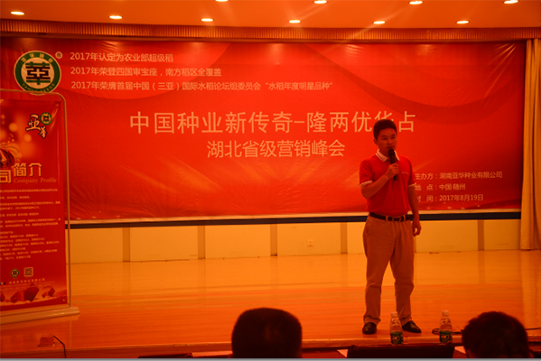 2017年8月19日在炎帝故里、世界編鐘之鄉(xiāng)—中國(guó)隨州,中國(guó)種業(yè)新傳奇—隆兩優(yōu)華占湖北省級(jí)營(yíng)銷峰會(huì)隆重拉開(kāi)序幕。參加此次峰會(huì)的有湖南亞華種業(yè)有限公司總經(jīng)理孫衛(wèi)華先生、湖南亞華種業(yè)有限公司湖北分公司總經(jīng)理姜文嘉先生、隨州新神農(nóng)種業(yè)有限公司總經(jīng)理萬(wàn)天江先生以及湖北隆兩優(yōu)華占的代理商和零售商170多人。全國(guó)著名農(nóng)村電視欄目《荊州壟上行》、隨州電視臺(tái)《社會(huì)全方位》、《湖北日?qǐng)?bào)》及《農(nóng)村新報(bào)》全程跟蹤報(bào)道了此次會(huì)議。