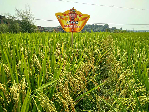 在2017年初百分農(nóng)業(yè)將隆兩優(yōu)1988(財神稻)重慶省級示范田設(shè)在南川區(qū)大觀鎮(zhèn)。大觀鎮(zhèn)是一個全國鄉(xiāng)村旅游示范區(qū),為了讓廣大農(nóng)戶更加富裕,黨和國家在行動,湖南百分農(nóng)業(yè)也在行動,百分農(nóng)業(yè)為南川老百姓帶帶來了“財神稻”。