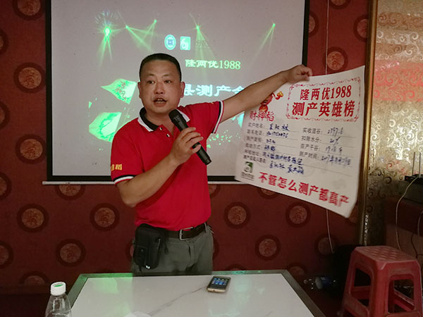 2017年8月29日在衡南隆兩優(yōu)1988代理商組織下,衡南洪山鎮(zhèn)迎來(lái)了60多位來(lái)自鄉(xiāng)鎮(zhèn)的零售商和種植大戶,一起觀摩隆兩優(yōu)1988的田間表現(xiàn)并且進(jìn)行現(xiàn)場(chǎng)測(cè)產(chǎn)。