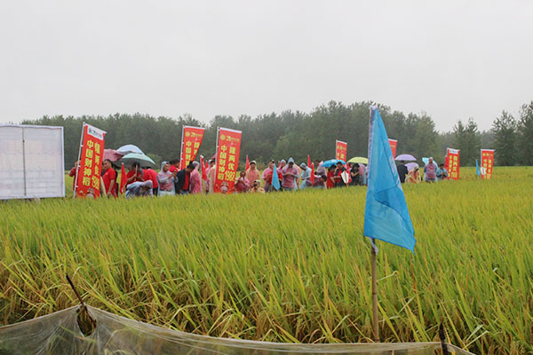 上午8點(diǎn)左右,安徽定遠(yuǎn)縣天空中飄著細(xì)雨,但依舊阻止不了各地代理商的觀摩熱情,在定遠(yuǎn)代理商楊玉的帶領(lǐng)下,全體參會(huì)人員從龍星國際酒店乘車冒雨前往定遠(yuǎn)縣程橋村進(jìn)行隆兩優(yōu)1988的田間觀摩。到達(dá)示范點(diǎn)后,由蘇皖大區(qū)朱經(jīng)理對(duì)示范田的播種時(shí)期、齊穗期、施肥、田間管理等基本情況做了詳細(xì)的講解,各地的代理商對(duì)財(cái)神稻經(jīng)歷了高溫抽穗、施肥過多、連續(xù)的風(fēng)雨天氣但依舊如此高結(jié)實(shí)率且屹立不倒贊不絕口。