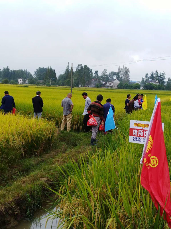 2017年9月11號(hào),在肥西縣山南區(qū)域迎來(lái)了一場(chǎng)零售商及種植大戶隆兩優(yōu)華占觀摩會(huì)。伴隨著絲絲的秋風(fēng),大家10點(diǎn)準(zhǔn)時(shí)來(lái)到了插滿隆兩優(yōu)華占旗子的田塊中。現(xiàn)場(chǎng)氣氛熱鬧,由亞華安徽分公司營(yíng)銷(xiāo)經(jīng)理劉向明給零售商及大戶進(jìn)行田間講解,主要包括如何防止病蟲(chóng)害、如何施肥、如何有效的管理田塊。介紹完之后,有好多大戶去到隆兩優(yōu)華占田里數(shù)起了水稻分蘗數(shù)、有效穗粒、結(jié)實(shí)率等。他們的臉上露出了驚訝的表情,今年那么高的溫度這個(gè)稻子絲毫沒(méi)有受到影響。隨后大家表示,明年終于可以種上耐高溫、抗倒伏、超抗病、米質(zhì)優(yōu)的好品種了。