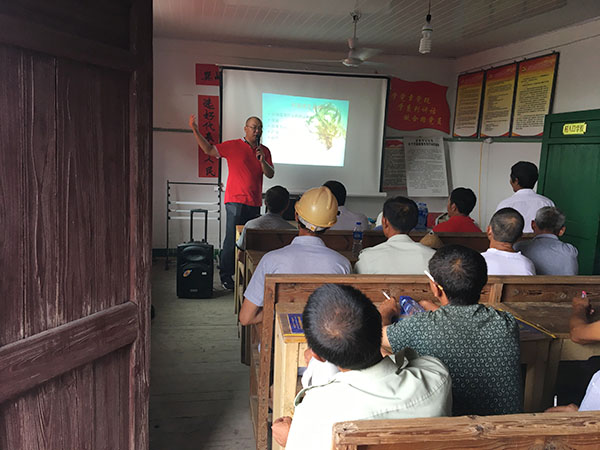 測產(chǎn)完畢,移師村委會,百分農(nóng)業(yè)技術(shù)骨干袁應亮老師繼續(xù)給大家再詳細地講解隆王稻,隆王稻為什么好?好在哪?接著講解了高產(chǎn)栽培技術(shù),病蟲害預防等知識,會場氣氛非常熱烈,農(nóng)戶積極參與互動提出自己遇到的問題,袁老師也為他們一一解答,此次會議就在這熱烈地討論中結(jié)束了。