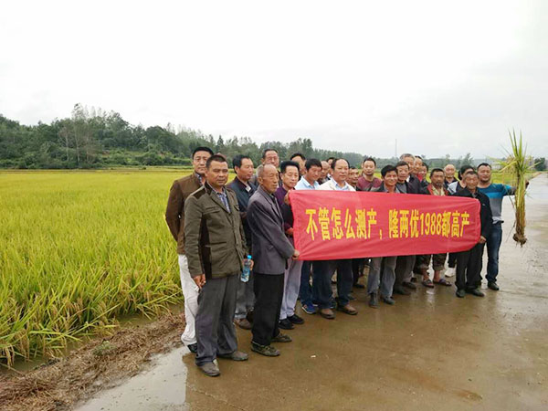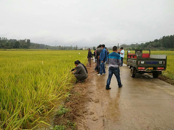 2017年9月9日星期天,在湖北棗陽市清潭鎮(zhèn)迎來了襄陽隆兩優(yōu)1988代理邵總所組織的30多人的觀摩團(tuán),盡管田間“水漫金山”依然不能阻擋來自襄陽零售商及種植大戶的觀摩熱情。