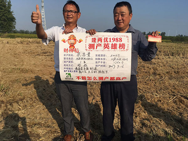 ——安徽壽縣財神稻隆兩優(yōu)1988首場測產(chǎn)會