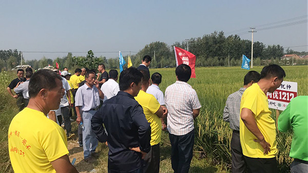 2017年9月18日上午,江蘇睢寧晶兩優(yōu)1212觀摩會正式拉開序幕。睢寧各個(gè)地方的零售商及核心種植戶陸續(xù)來到睢寧邱集鎮(zhèn)的晶兩優(yōu)1212示范田。剛來到田間大家就被映入眼簾的晶兩優(yōu)1212震撼到了。是什么讓他們這么震撼呢?